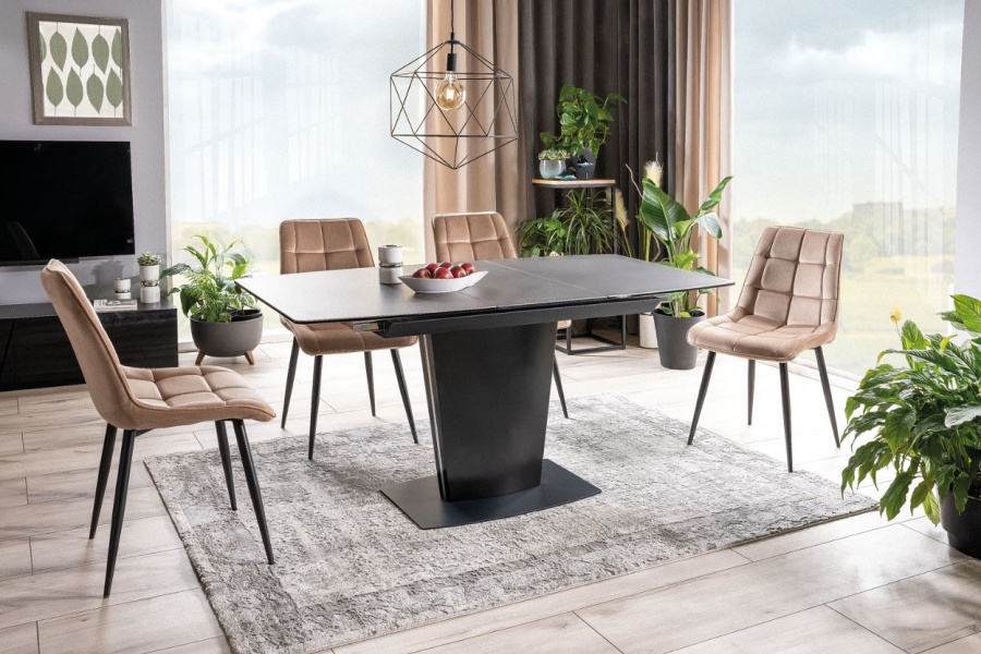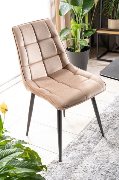 Scaun tapitat CHIC VELVET catifea beige 50x58xH88cm, picioare negre