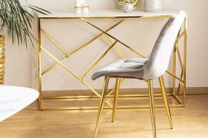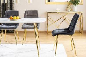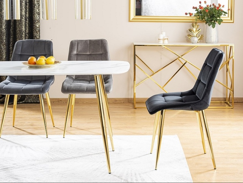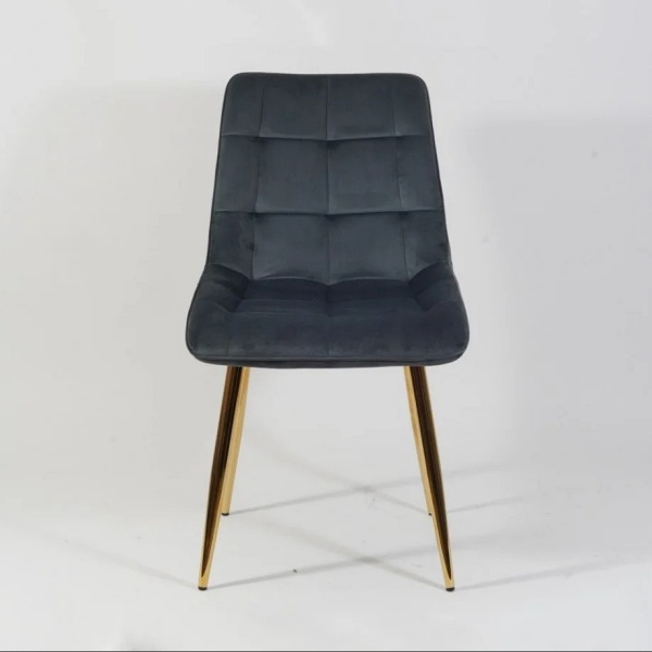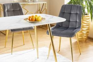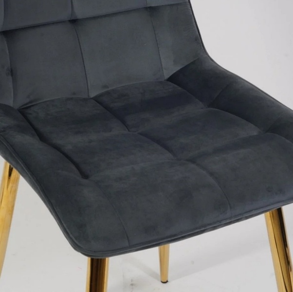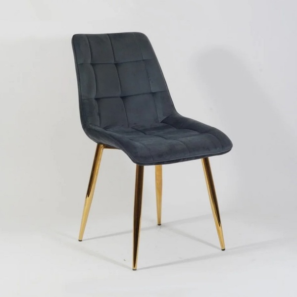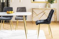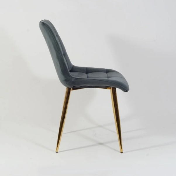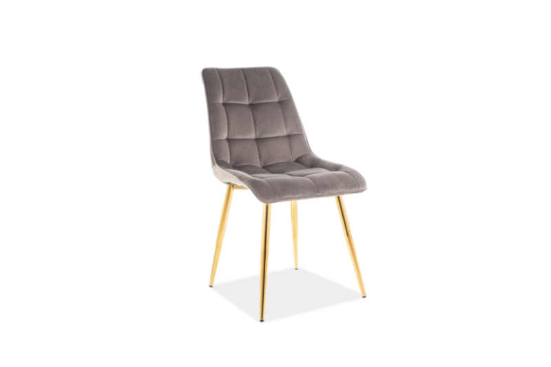 Scaun grey CHIC VELVET GOLD din catifea Bluvel 14(gri), cu picioare metalice aurii. Design rafinat si modern, ideal pentru interioare elegante. Confort si stil deosebit intr-un singur produs!