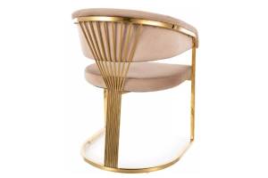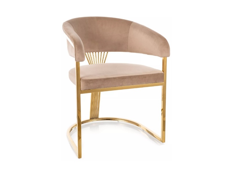 Scaun tapitat CROWN VELVET design rotunjit luxury, catifea beige 57x64xH77cm, picioare aurii