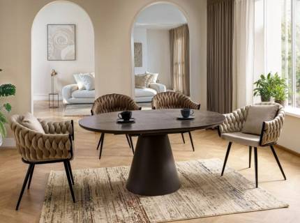 Scaun tapitat ELTON BREGO minimalist, material textil cappuccino 56x58xH80cm, picioare casmir