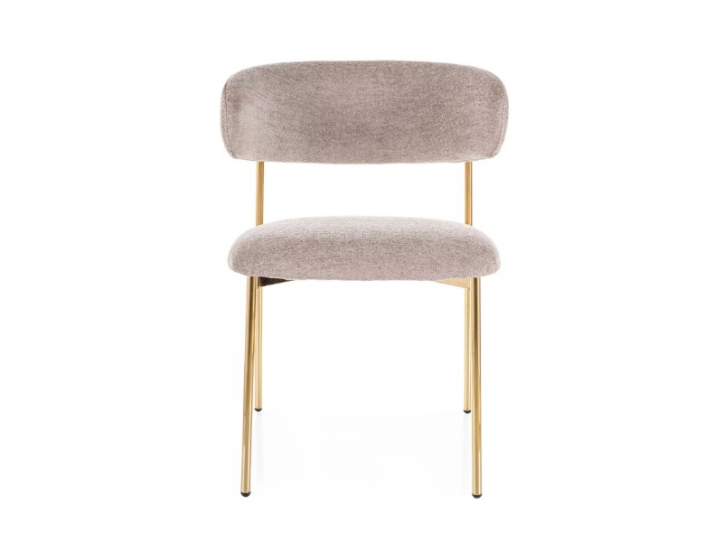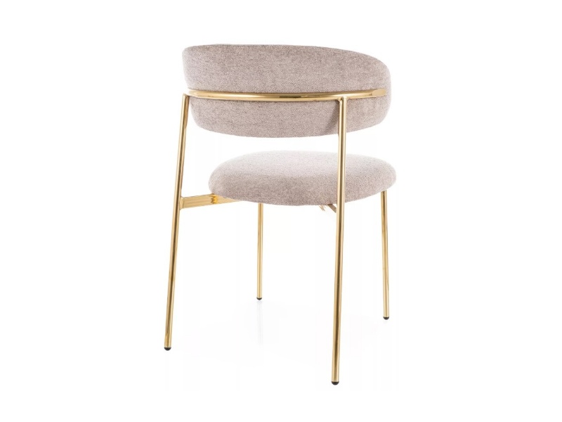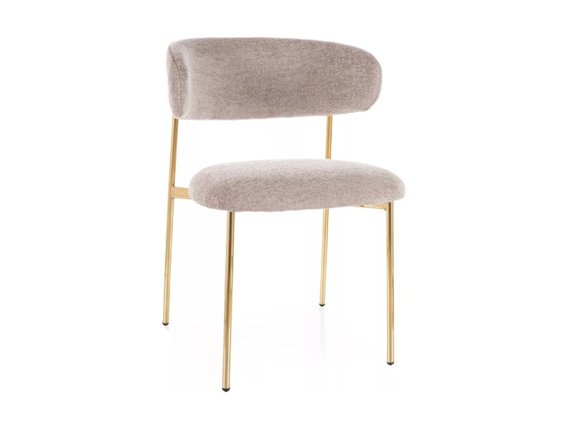 Scaun tapitat ELTON RAVEN minimalist, material textil beige 56x58xH80cm, picioare aurii