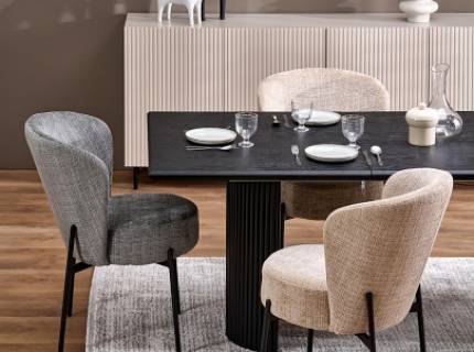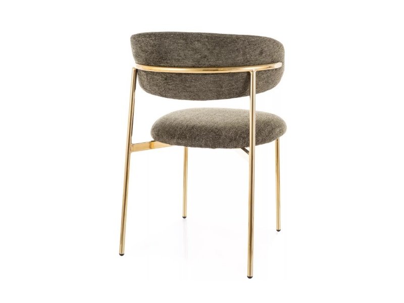 Scaun tapitat ELTON RAVEN minimalist, material textil olive 56x58xH80cm, picioare aurii