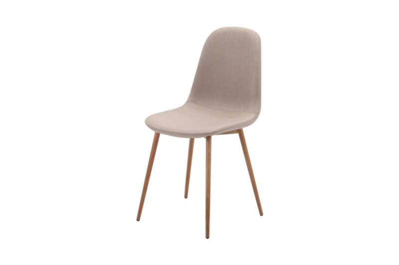 Scaun tapitat FOX minimalist, material textil beige 44x39xH86cm, picioare nuanta lemnului