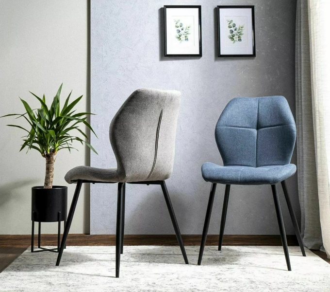 Scaun tapitat FRANK NEA material textil denim 48x56xH86cm, picioare negre