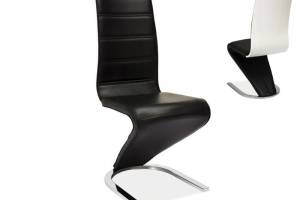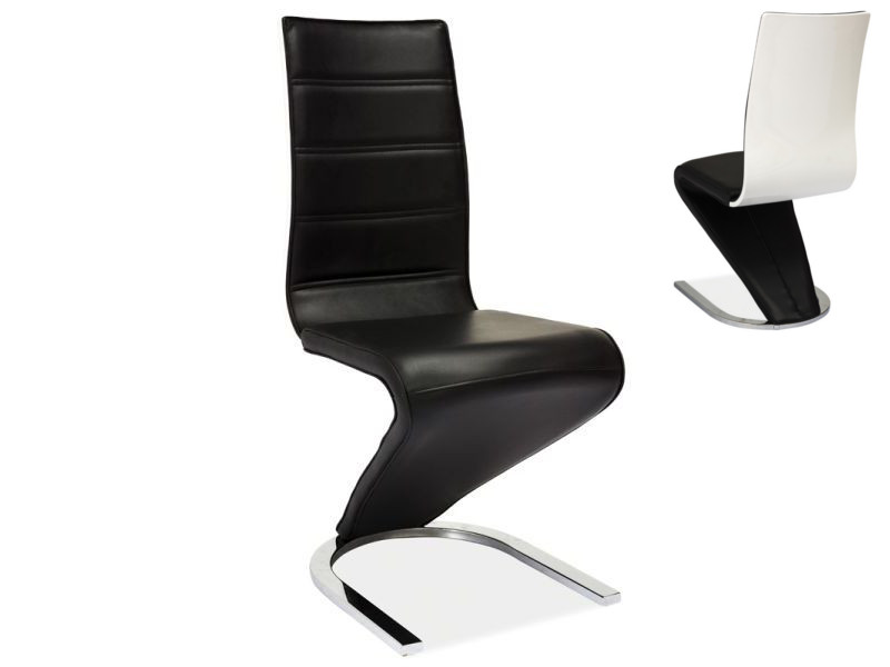 Scaun tapitat H-669 ecopiele neagra + alba 44x46xH99cm, picioare crom