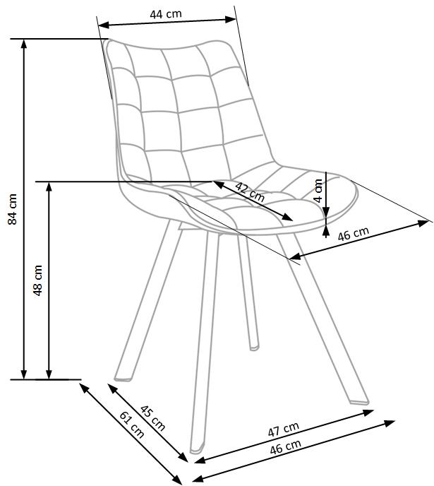 Scaun tapitat K332 catifea bordo 46x61xH84cm, picioare negre