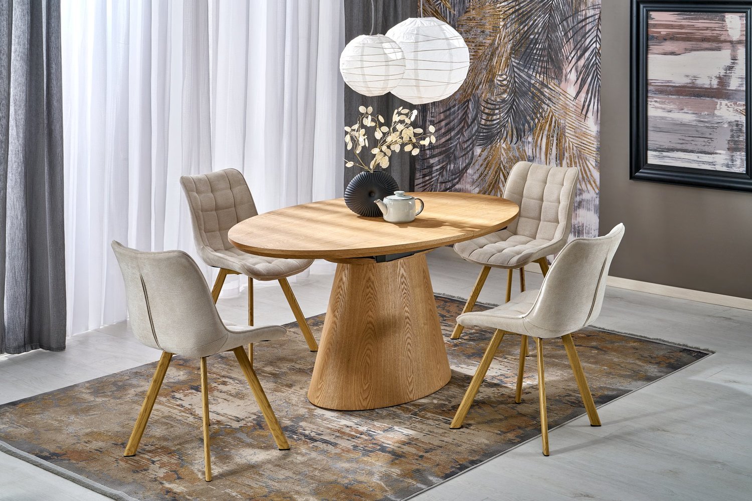 Scaun tapitat K332 material textil beige 46x61xH84cm, picioare nuanta lemnului
