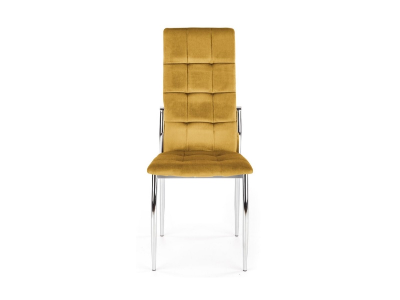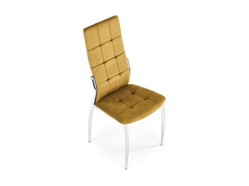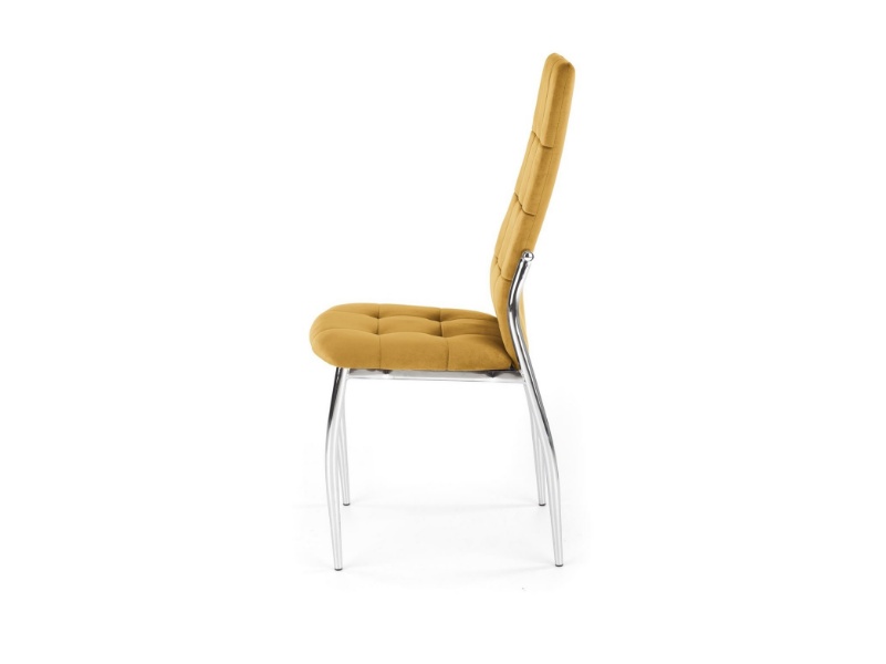 Scaun tapitat K416 cu spatar inalt, catifea curry 43x54xH101cm, cadru si picioare crom