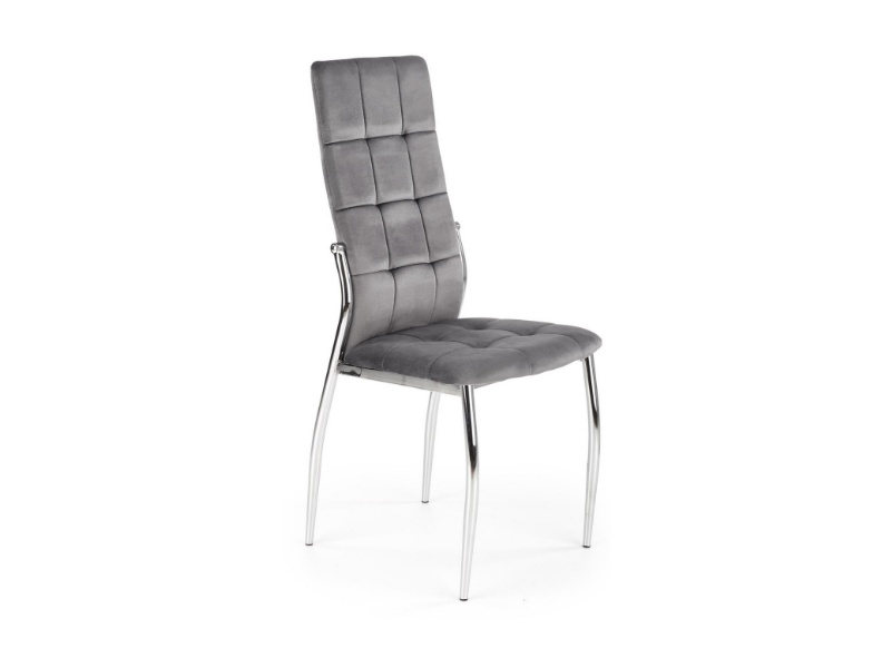 Scaun tapitat K416 cu spatar inalt, catifea grey 43x54xH101cm, cadru si picioare crom