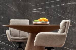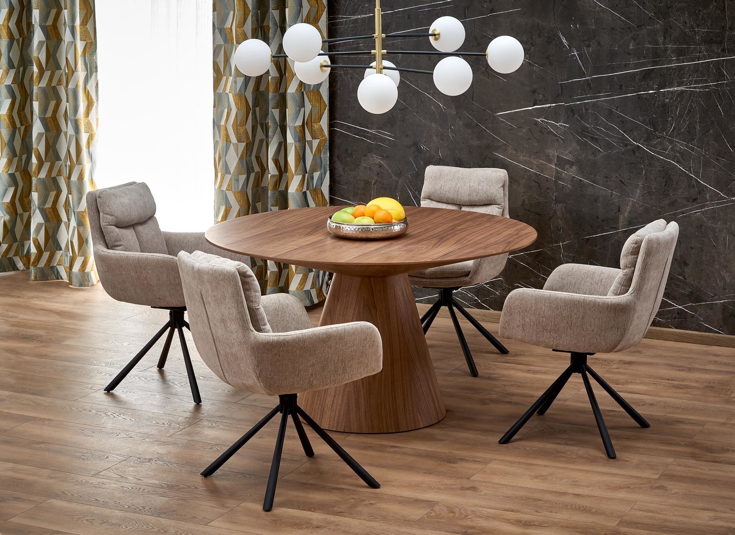 Scaun tapitat K495 rotativ, confortabil, material textil beige 50x50xH87cm, picioare negre
