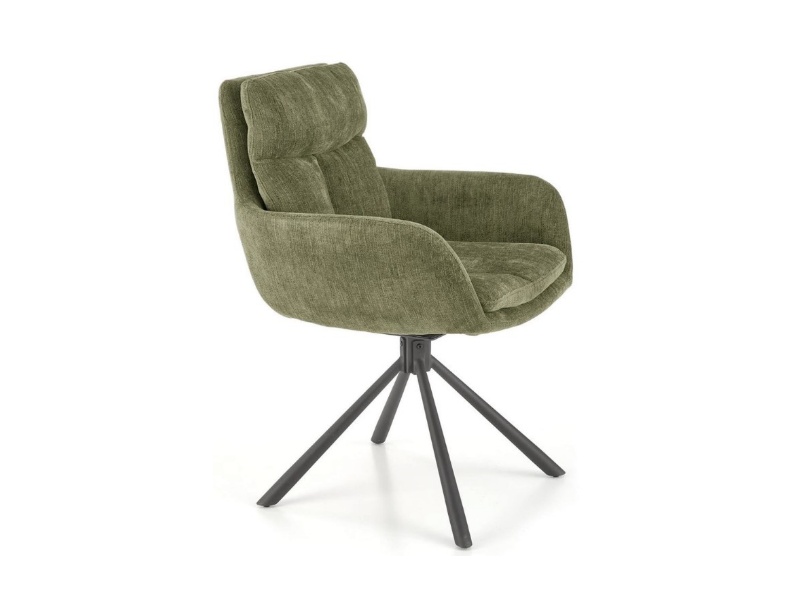 Scaun tapitat K495 rotativ, confortabil, material textil olive 50x50xH87cm, picioare negre