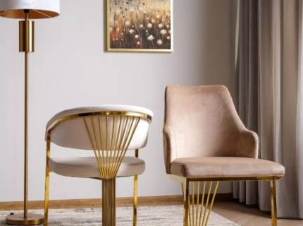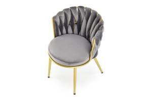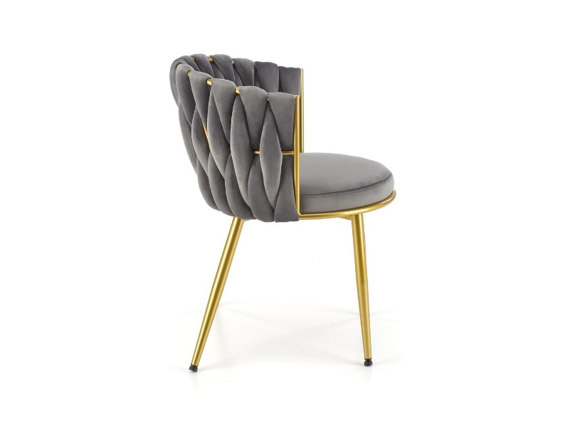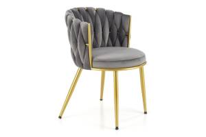 Scaun tapitat K517 elegant, luxury, catifea grey 40x48xH79cm, cadru si picioare aurii
