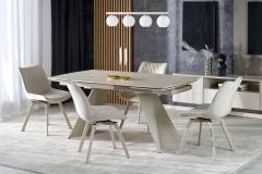 Scaun tapitat K520 rotativ, catifea cream 46x47xH80cm, picioare casmir