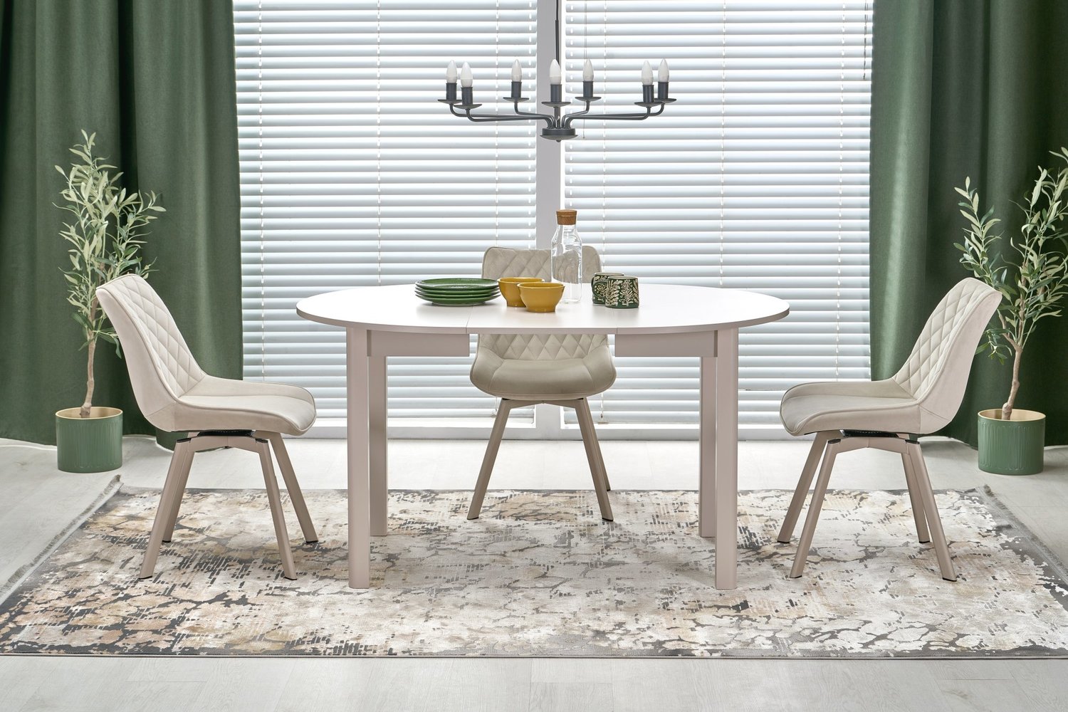 • Picioarele scaunului sunt fabricate din otel vopsit cu pulbere nuanta casmir