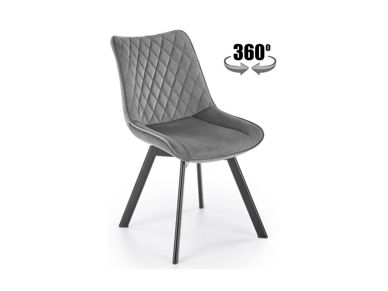 Scaun tapitat K520 rotativ, catifea grey 46x47xH80cm, picioare negre