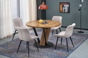 Scaun tapitat K567 material textil beige 47x47xH85cm, picioare negre