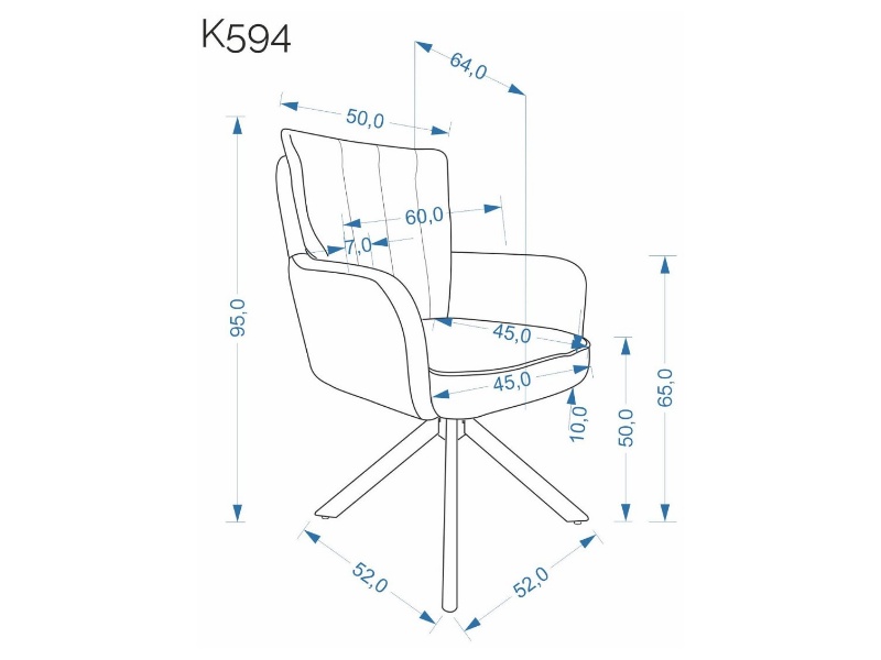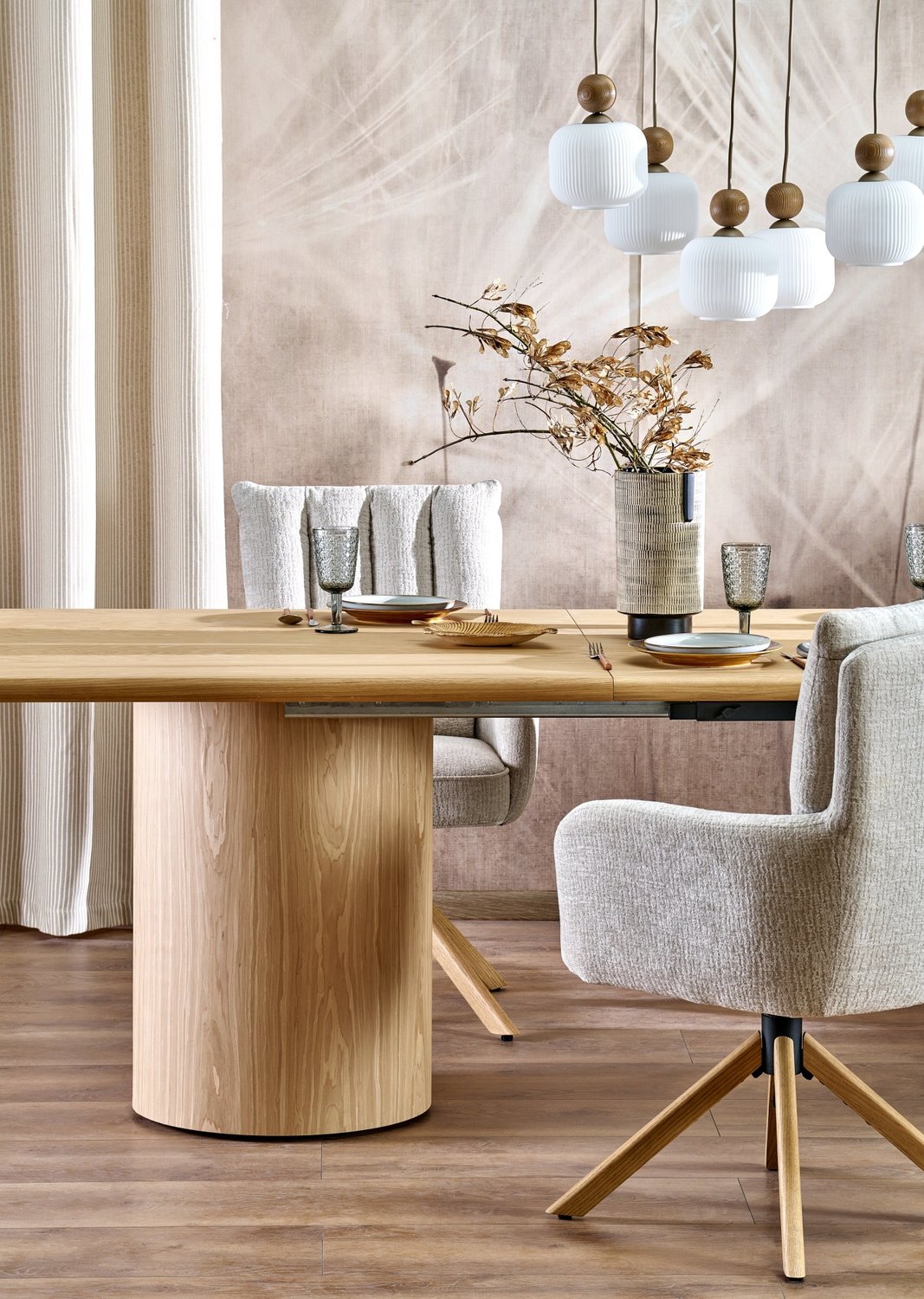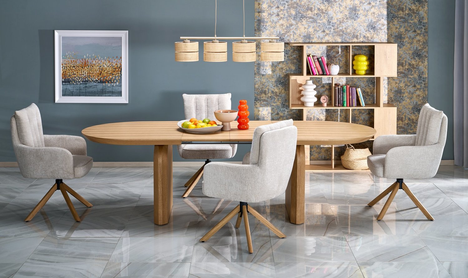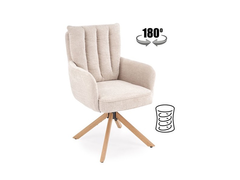 Scaun tapitat K594 rotativ, cu arcuri, material textil beige 60x64xH95cm, picioare nuanta lemnului