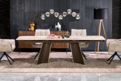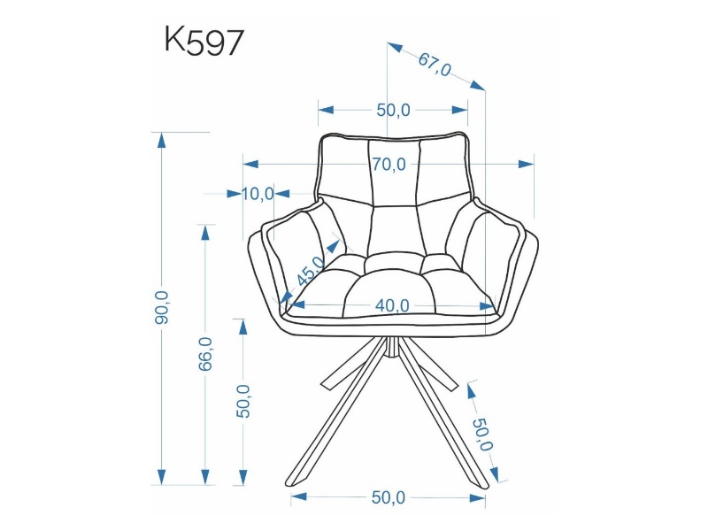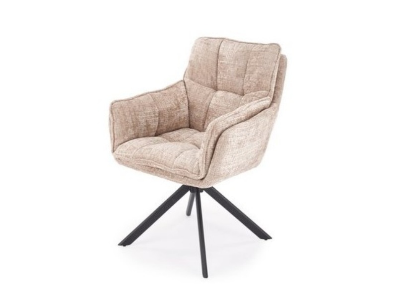 Scaun tapitat K597 rotativ, confortabil, material textil beige 70x67xH90cm, picioare negre