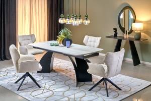 Scaun tapitat K601 rotativ, material textil beige 57x64xH90cm, picioare negre