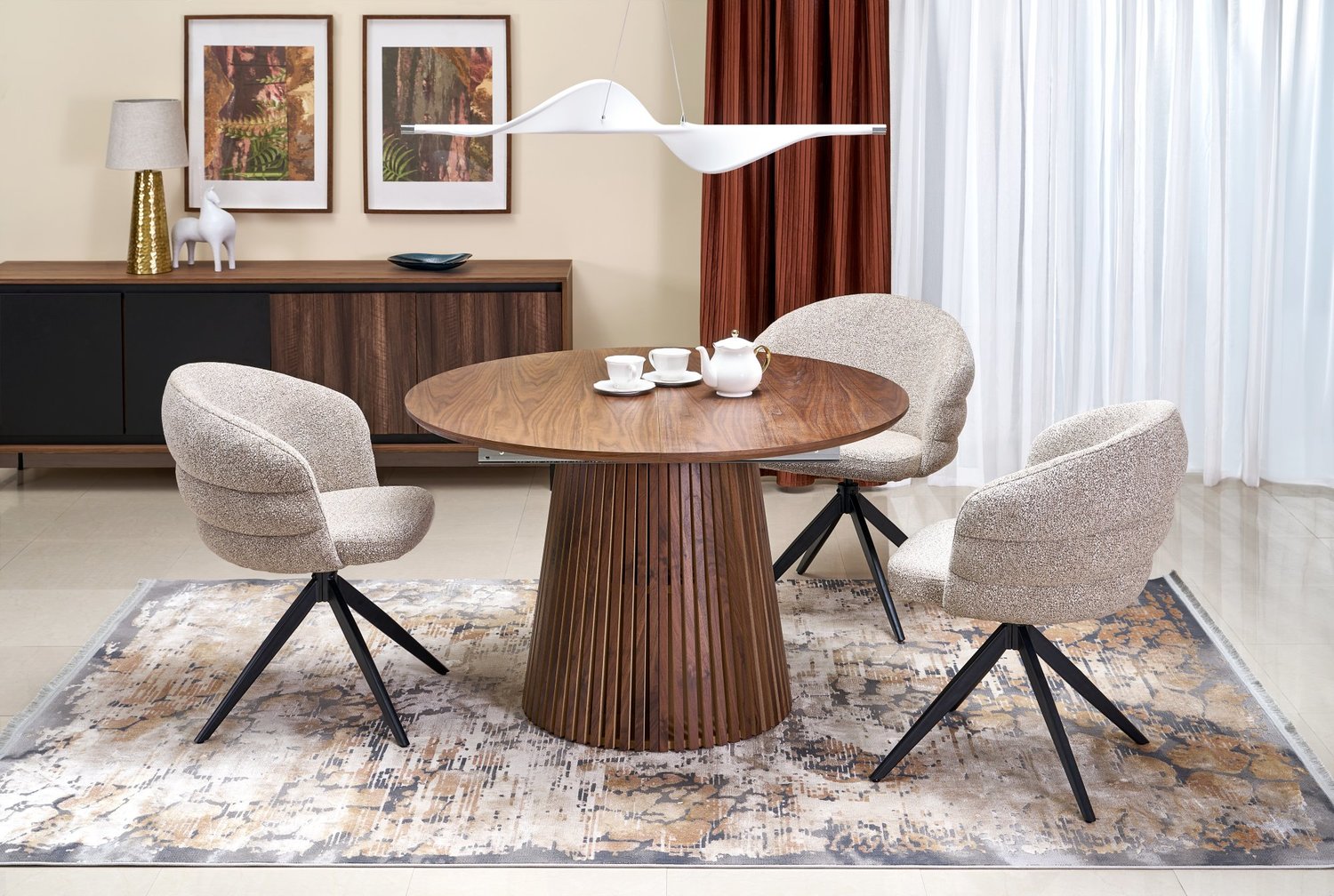 Scaun tapitat K604 rotativ, material textil beige 65x62xH85cm, picioare negre