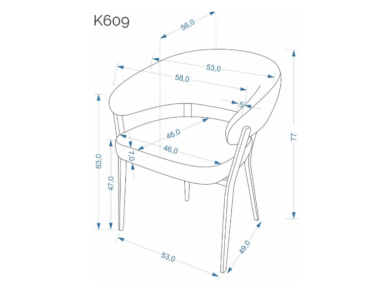 Scaun tapitat TRIX VELVET catifea blue 49x59xH89cm, picioare tapitate
