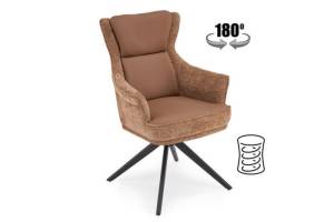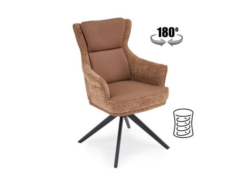 Scaun tapitat K611 rotativ, cu arcuri, material textil brown/ ecopiele brown 64x66xH96cm, picioare negre
