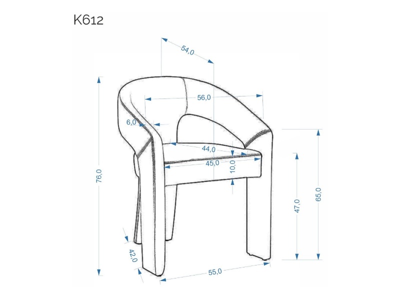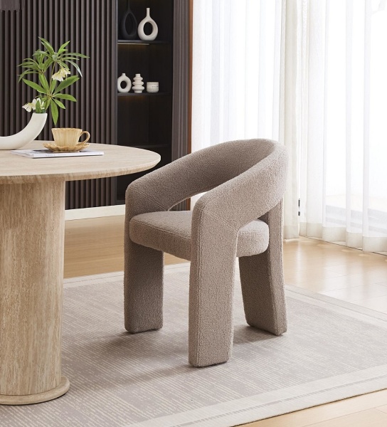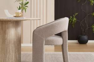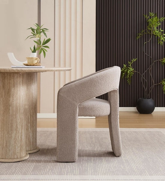 Scaun tapitat K612 material plusat bucle beige 56x54xH76cm, picioare tapitate beige