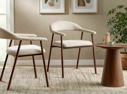 Scaun tapitat K614 rotativ, cu arcuri, material textil beige 60x63xH87cm, picioare casmir