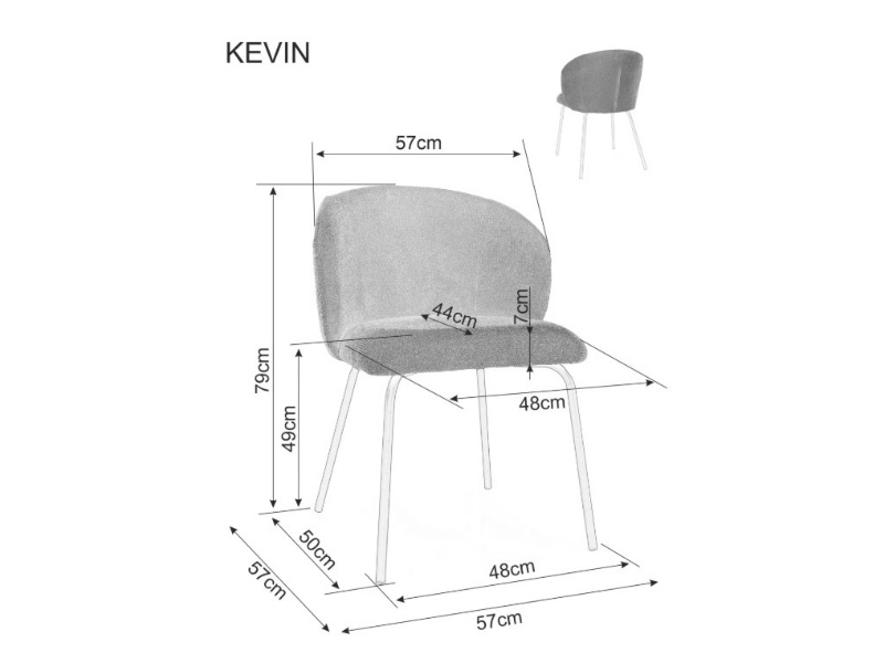 Scaun tapitat KEVIN VARDO minimalist, material textil curry 57x57xH79cm, picioare negre