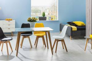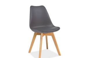 Scaun tapitat KRIS design scandinav, plastic gri + ecopiele gri 49x43xH83cm, picioare nuanta lemnului