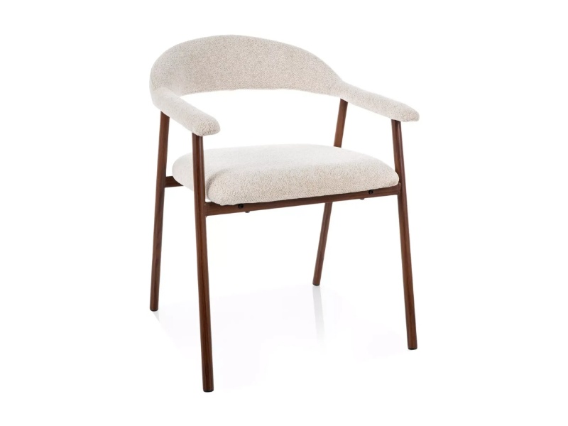Scaun tapitat LAGOS D RAVEN material textil cream 57x61xH76cm, picioare nuanta lemnului nuc