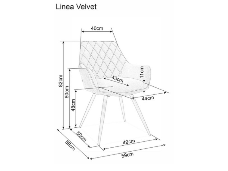 Scaun tapitat LINEA VELVET catifea grey 59x59xH82cm, picioare negre
