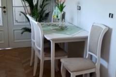 Scaun tapitat MN-SC design clasic, material textil cream 45x42xH96cm, cadru si picioare din lemn albe