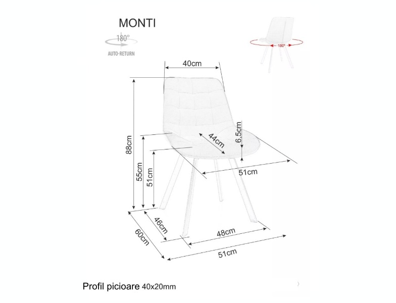 Scaun tapitat MONTI VELVET rotativ, catifea cappuccino 51x60xH88cm, picioare negre