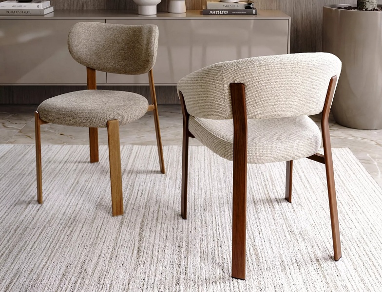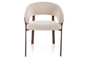 Scaun tapitat NAGOJA D material textil beige 56x60xH80cm, picioare si cadru nuanta lemnului nuc