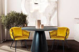 Scaun tapitat NUVO VELVET elegant, confortabil, catifea curry 62x63xH86cm, cadru si picioare negre