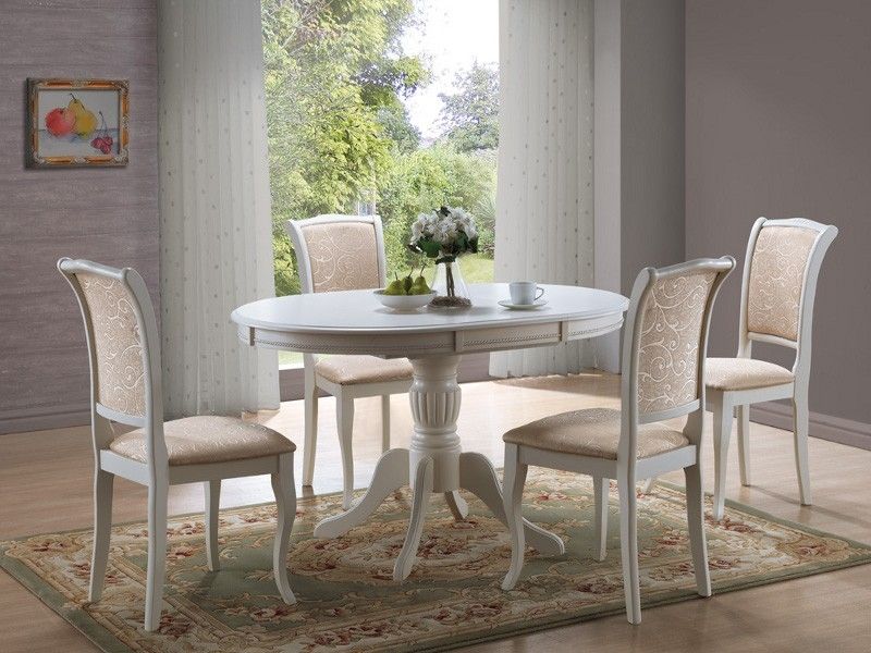 Scaun tapitat OP-SC2 design clasic, material textil cu model cream 45x42xH96cm, cadru si picioare din lemn albe