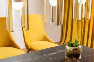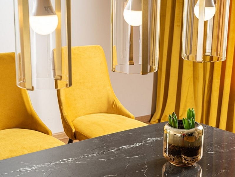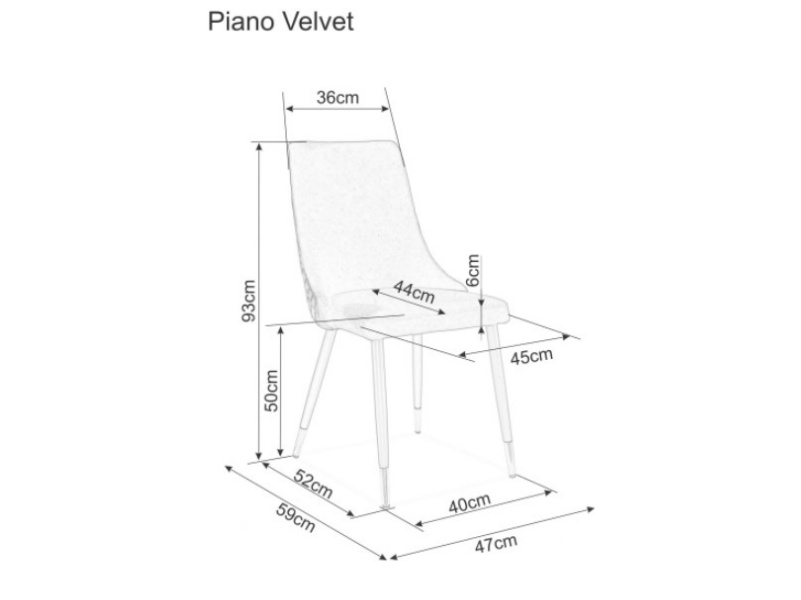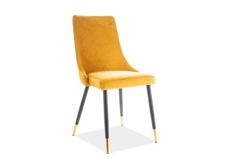 Scaun tapitat PIANO VELVET catifea curry 47x59xH93cm, picioare negre cu auriu