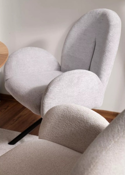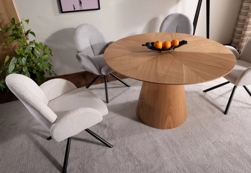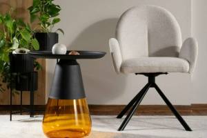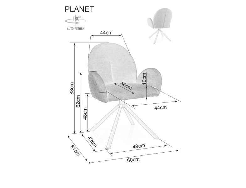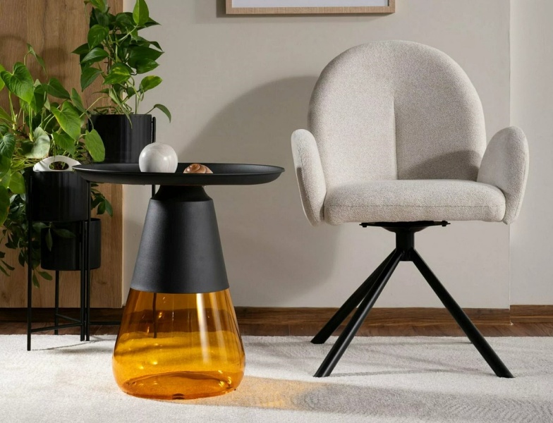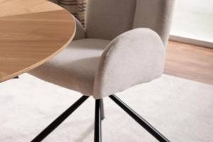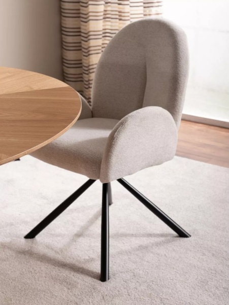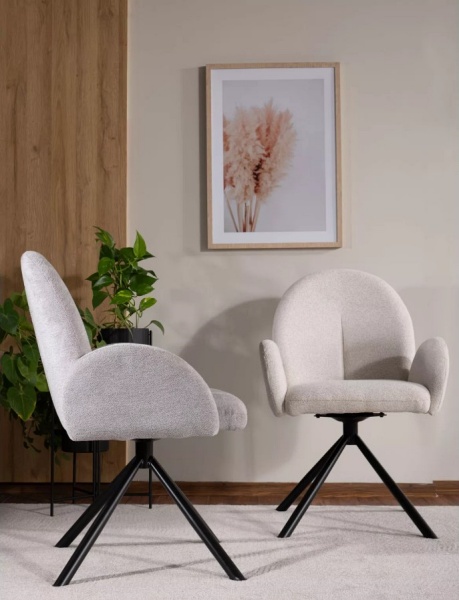 Scaun tapitat PLANET RAVEN rotativ, material textil beige 60x61xH88cm, picioare negre