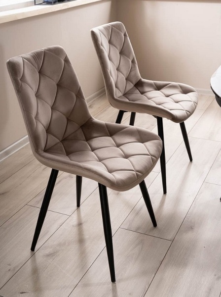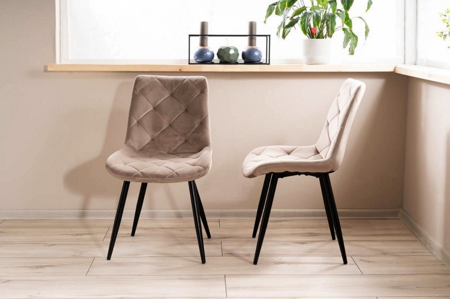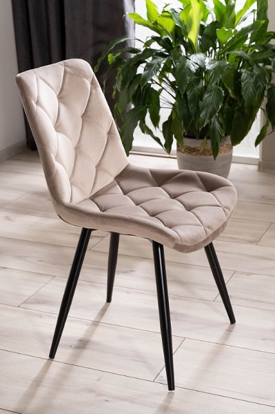 Scaun tapitat K417 catifea beige 45x56xH87cm, picioare negre