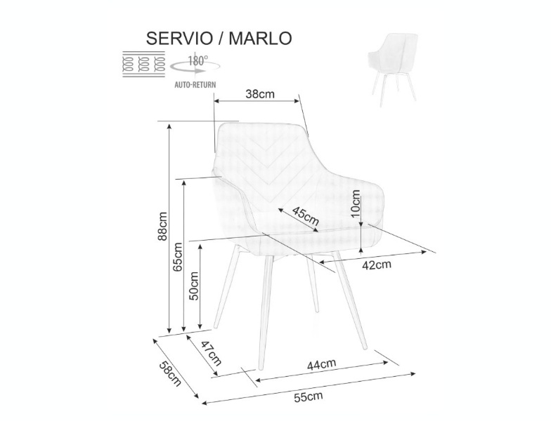 Scaun tapitat SERVIO BREGO rotativ, material textil grey 55x58xH88cm, picioare negre