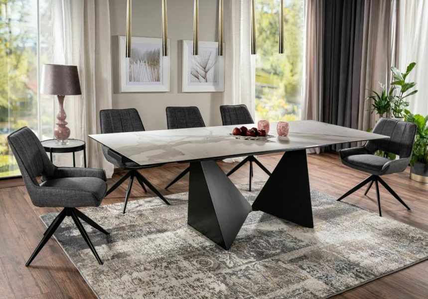 Scaun tapitat TELLO BJORN rotativ, material textil grey 54x61xH84cm, picioare negre