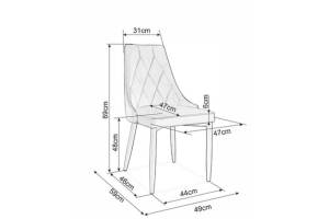 Scaun tapitat TRIX VELVET catifea blue 49x59xH89cm, picioare tapitate