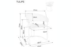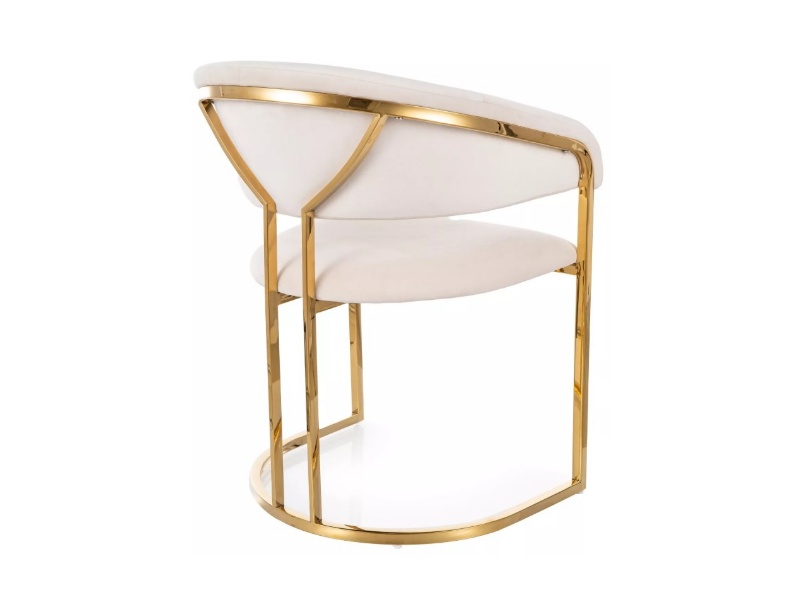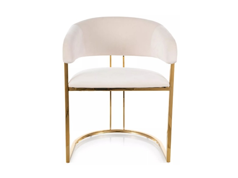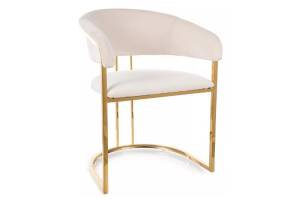 Scaun tapitat TULIPE VELVET design rotunjit luxury, catifea cream 57x64xH77cm, picioare aurii
