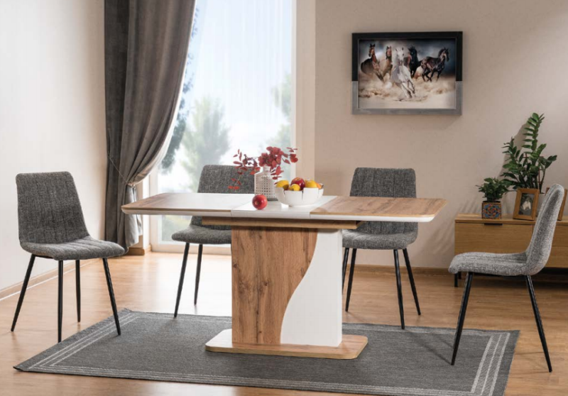 Set 4 scaune tapitate 123 ALAN material textil grey 45x40xH88cm, picioare negre