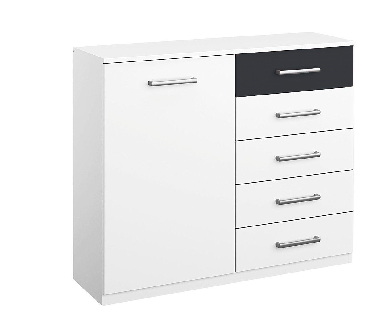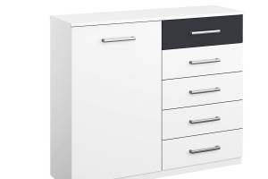 Comoda alb alpin/ gri metalic cu 1 usa + 4 sertare 93x81x42cm BARCELONA
