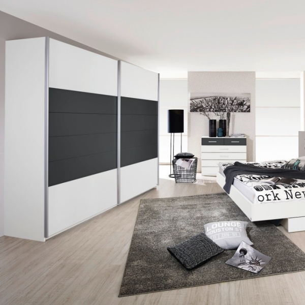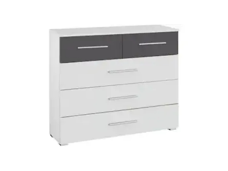 Comoda alb alpin/ gri metalic cu 5 sertare 93x81x42cm BARCELONA