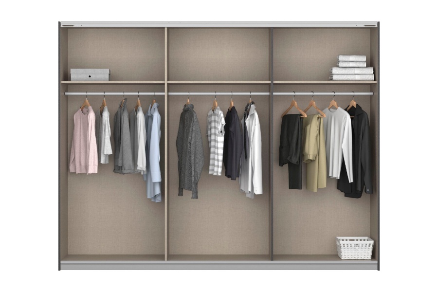 Dulapul poate fi completat cu accesorii inteligente ( sertare, polite, bare pt. umerase, inchidere soft...) care se potrivesc exact nevoilor fiecaruia.