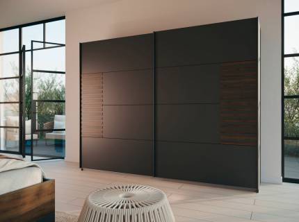 Dulap cu usi glisante BAREA 226x210x62cm champagne + stejar Atlantic dark, maner gri metalic