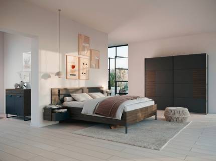 Dulap cu usi glisante BAREA 181x210x62cm gri metalic + stejar Atlantic dark, maner gri metalic